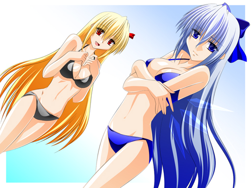 思い出して、フェイトとなのはの水着絵を。