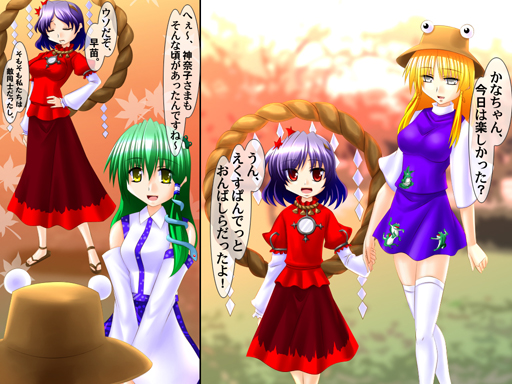 素直な早苗さんは諏訪子の冗談に翻弄されます。(笑)